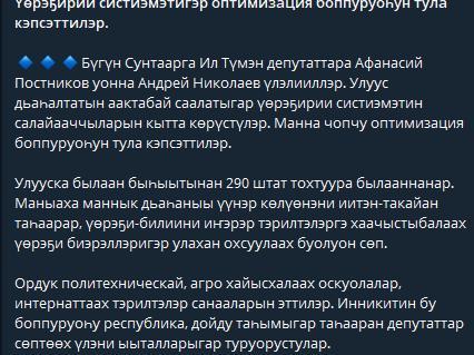 О намерении сократить 290 работников образования в Сунтарском районе сообщили 2 декабря в телеграм-канале администрации улуса.