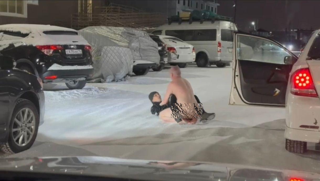 Инцидент, согласно данным из соцсетей, произошел вечером 10 марта. По предварительной информации, конфликт вспыхнул после того, как один из мужчин застал свою супругу в автомобиле с голым подчиненным. На видеозаписи обнаженный участник опрокидывает другого мужчину на землю, применяет болевой прием, а затем занимает место на заднем сиденье машины.