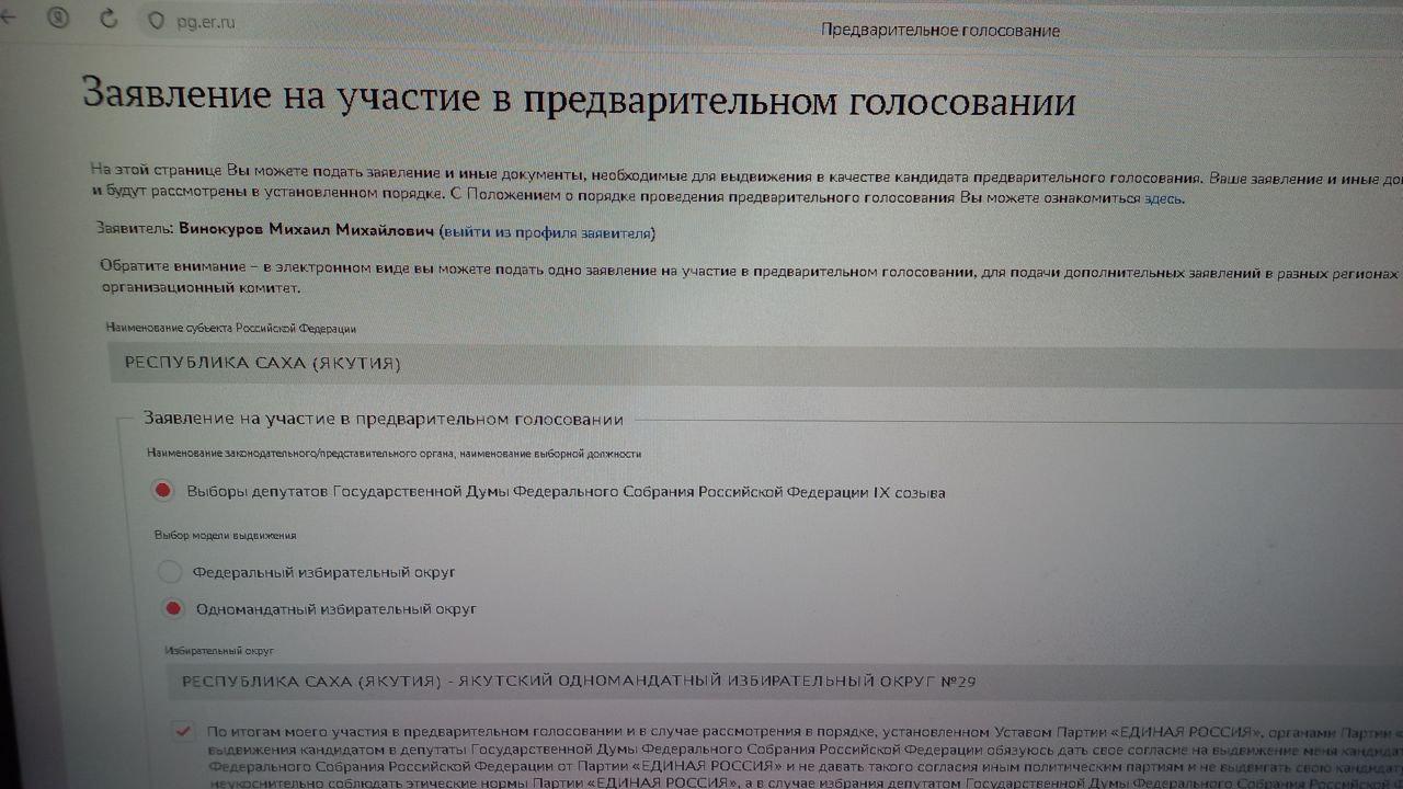 Ранее документы для участия в праймериз подал министр по делам молодёжи и социальным коммуникациям Якутии, участник СВО Петр Шамаев.