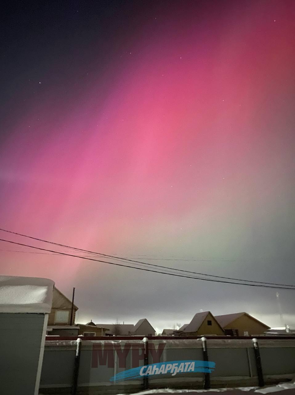 Яркое полярное сияние окрасило небо в разнообразные цвета в нескольких регионах. В Алдане наблюдался ярко-розовый цвет с зеленоватыми вспышками. В Чите и под Шилкой небо стало почти кроваво-красным. В Бурятии заметили легкое красноватое свечение, а в Иркутской области преобладали розово-фиолетовые оттенки.