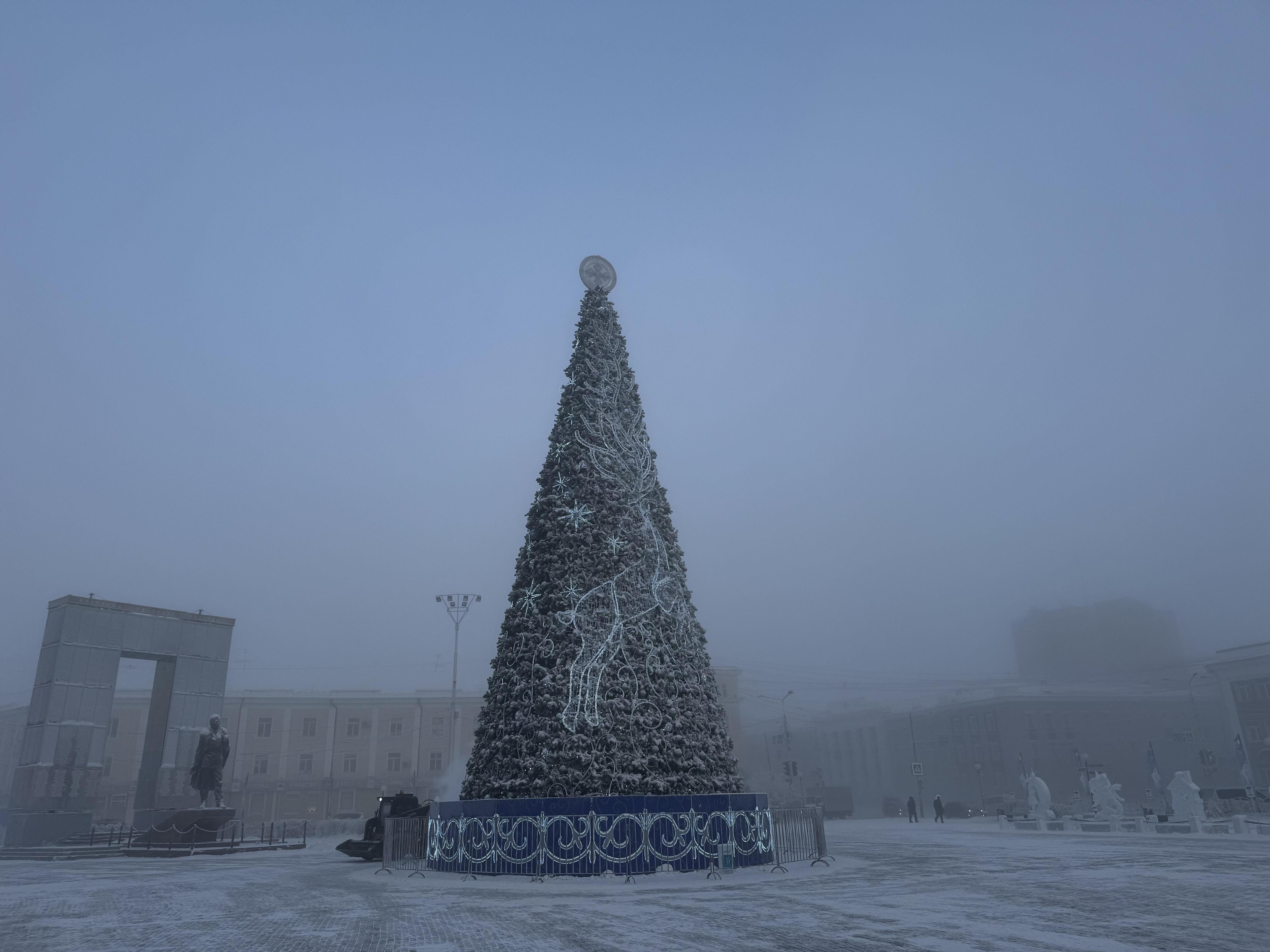 Новогодняя ель на площади Орджоникидзе в Якутске