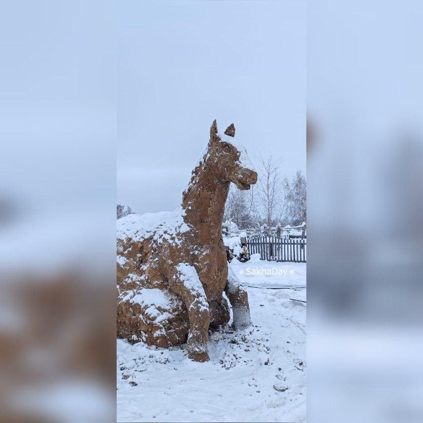 Народный мастер Иван Боппосов из села Уолба в Таттинском районе Якутии изготовил фигуру лошади, символа наступающего 2026 года, из коровьего навоза — балбаха. Готовую скульптуру он разместил в своем дворе.